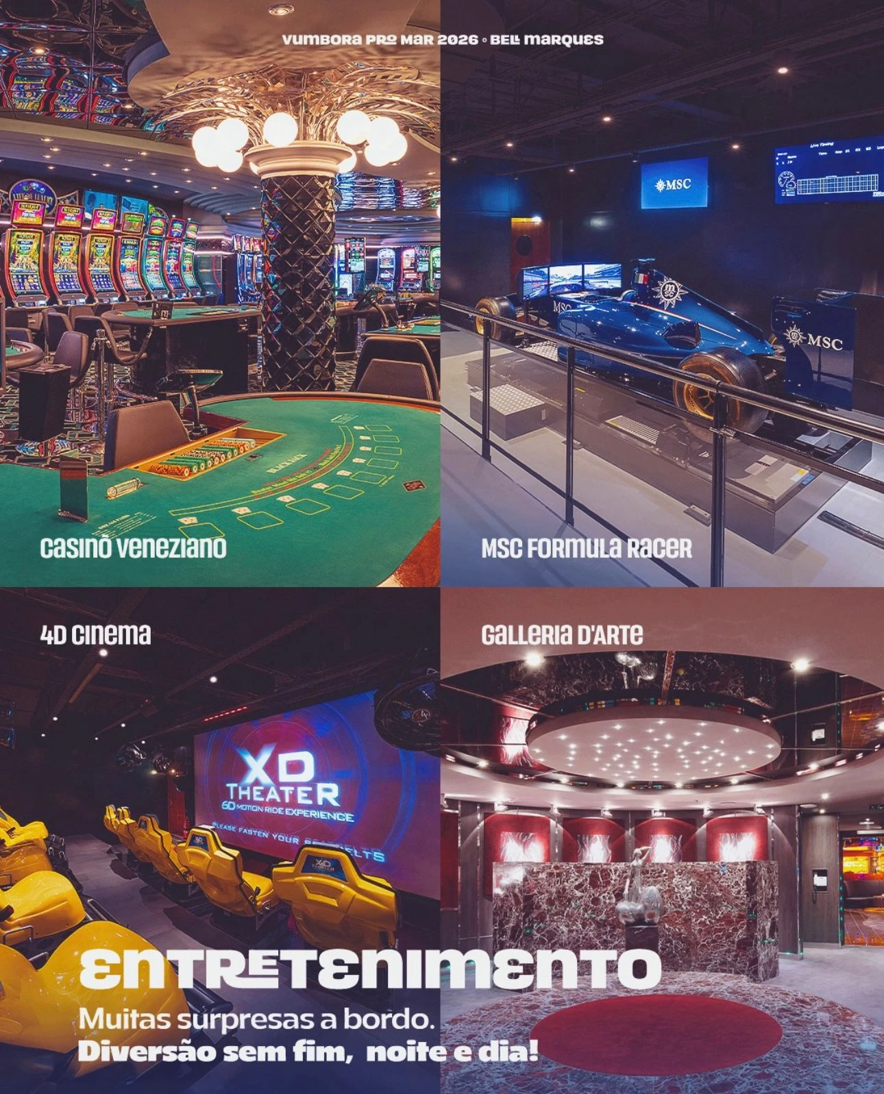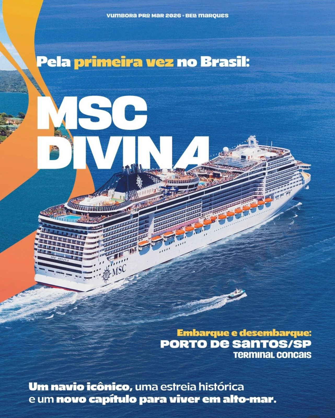 Dias de sol e mar em alto-mar, gente feliz, clima de verão e a vibração única que só quem embarca entende. Com Bell Marques no comando, durante 3 dias o transatlântico vira um verdadeiro resort flutuante, cenário perfeito para viver alegria, celebração e conexão em alto-mar. É sol, é mar, é intensidade.
